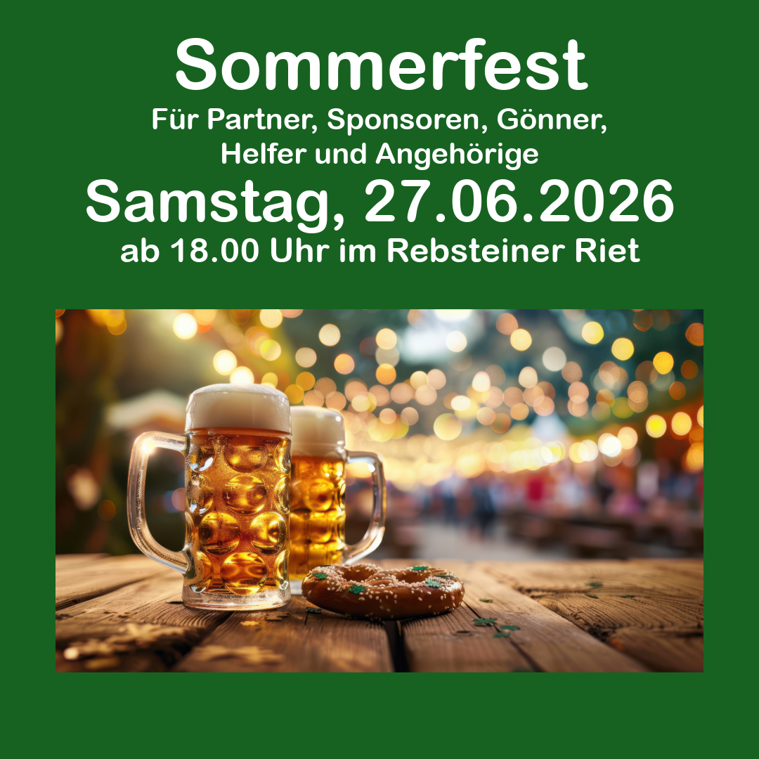 Am 27. Juni 2026 laden wir unsere Partner, Sponsoren, Gönner, Helfer und Angehörigen zum Sommerfest im Rebsteiner Riet ein.