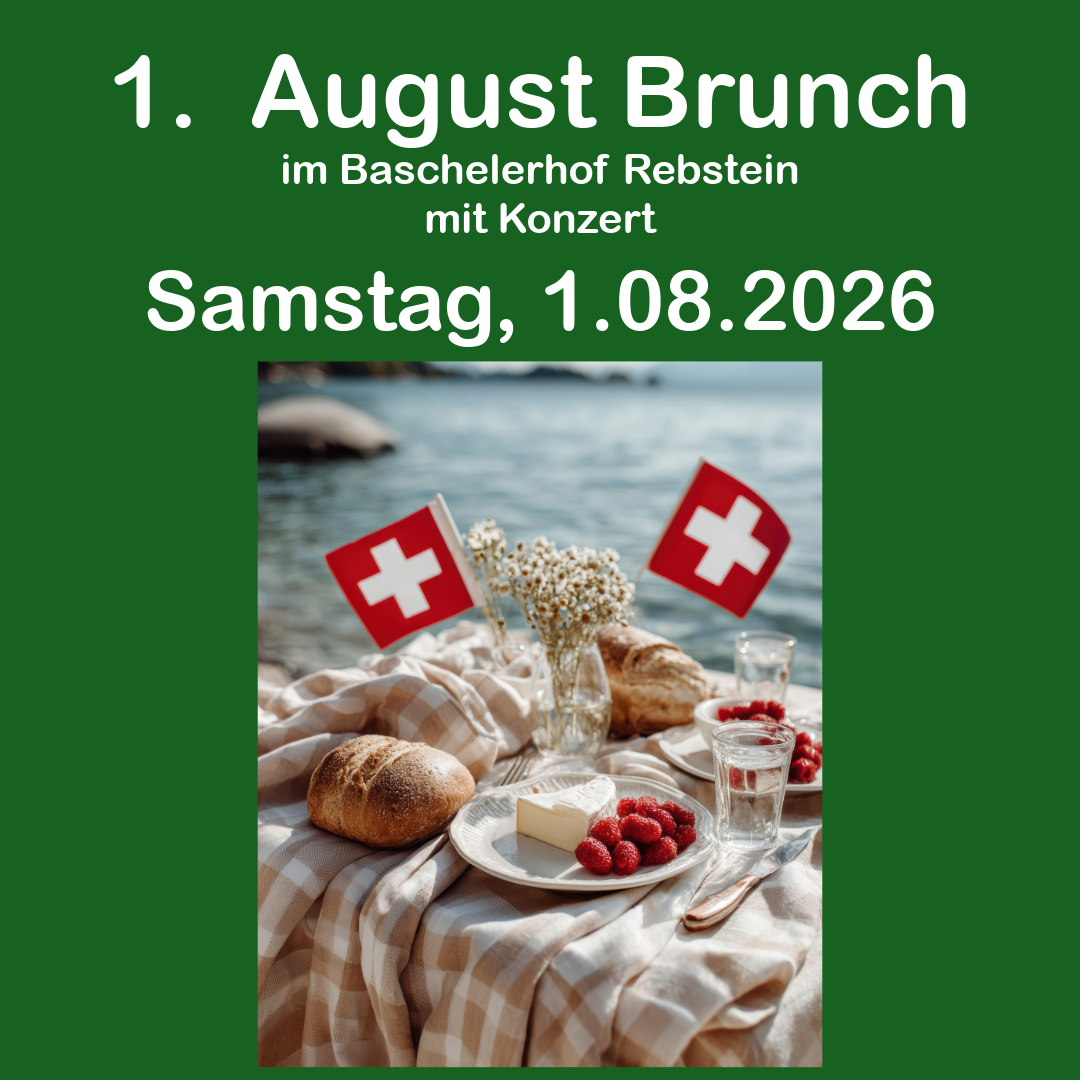 Am 1. August 2026 feiern wir den Geburtstag der Schweiz mit einem Brunch und einem Konzert im Baschelerhof in Rebstein.